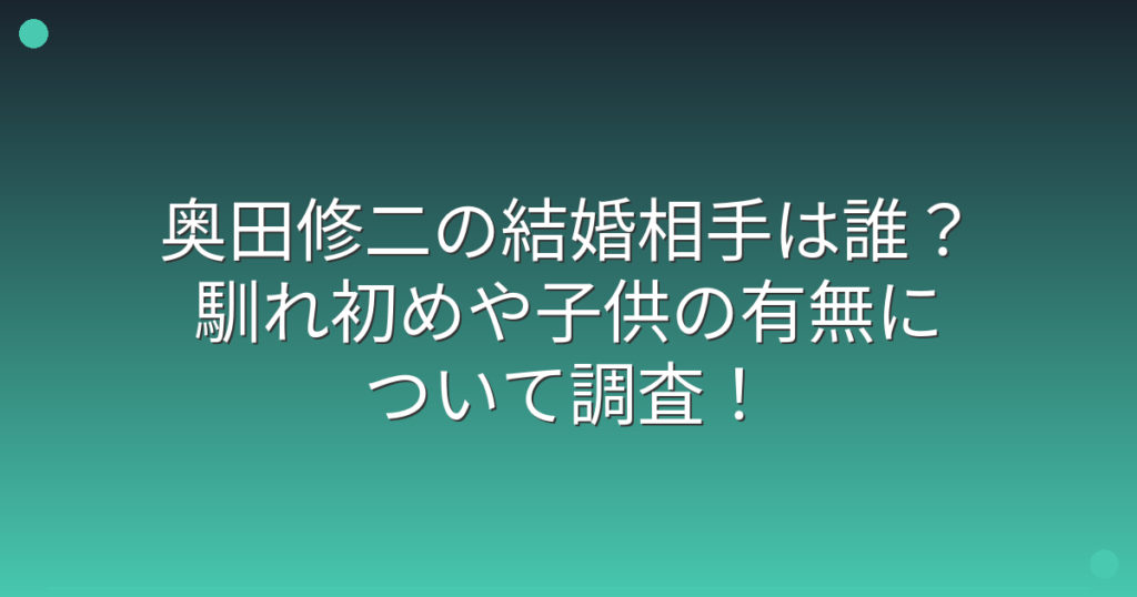 奥田修二の結婚相手は誰?馴れ初めや子供の有無について調査!