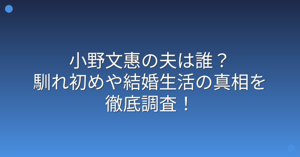 小野文惠の夫は誰?馴れ初めや結婚生活の真相を徹底調査!