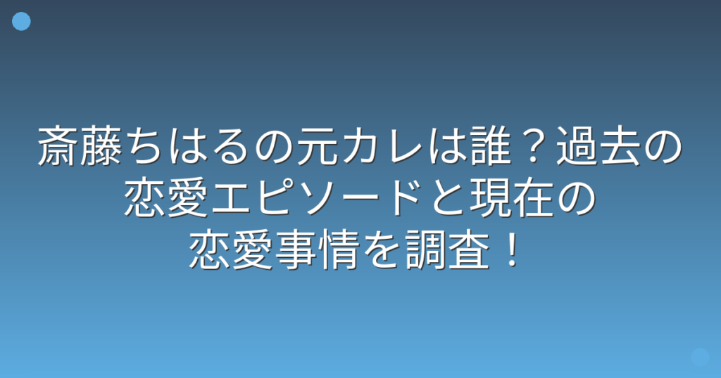 元乃木坂46メンバーでアナウンサーとしても活躍する斎藤ちはるさんの恋愛事情が話題になっていますね。 清楚で知的なイメージの斎藤ちはるさんですが、過去の恋愛について気になるファンも多いのではないでしょうか。 そこで今回は、斎藤ちはるさんの元カ... -