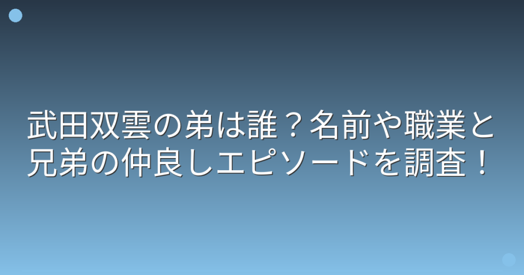 書道家として活躍する武田双雲さんですが、弟さんについて気になっている方も多いのではないでしょうか。 実は武田双雲さんには弟さんがいて、兄弟揃って才能豊かな方として知られています。 そこで今回は、武田双雲さんの弟さんの名前や職業、兄弟の仲良... -