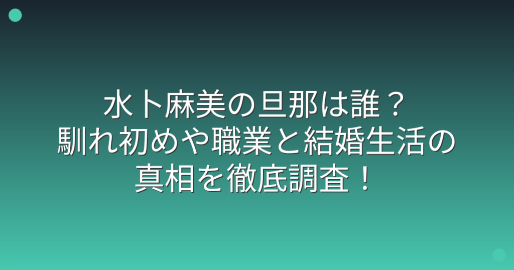 水卜麻美の旦那は誰?馴れ初めや職業と結婚生活の真相を徹底調査!