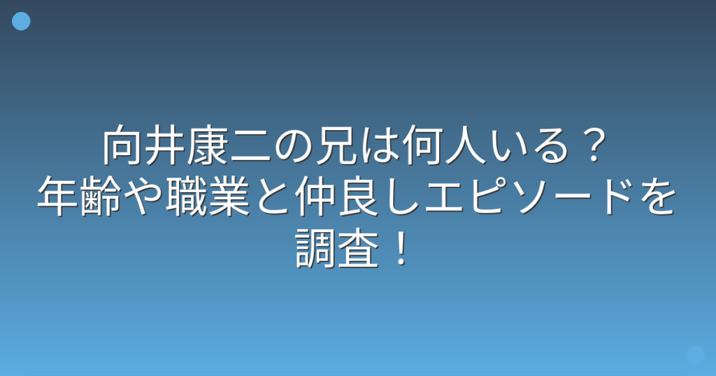 向井康二の兄は何人いる?年齢や職業と仲良しエピソードを調査!