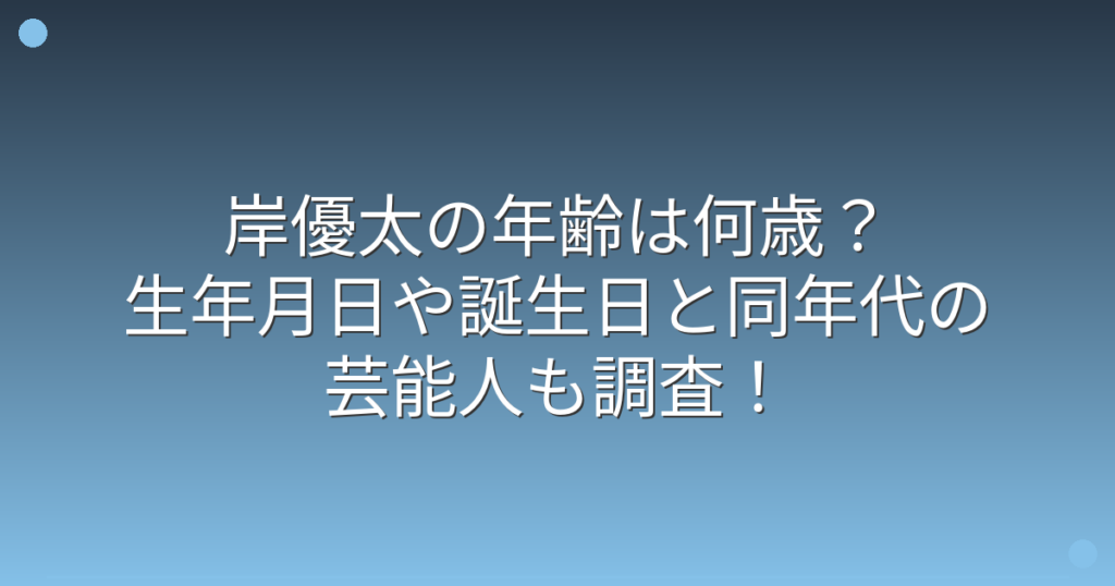岸優太の年齢は何歳?生年月日や誕生日と同年代の芸能人も調査!
