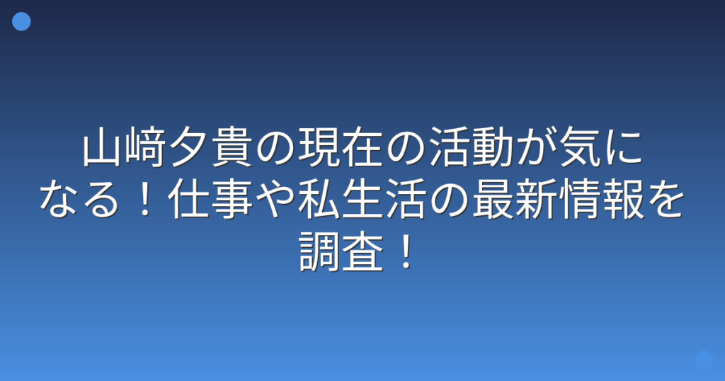 山﨑夕貴の現在の活動が気になる!仕事や私生活の最新情報を調査!