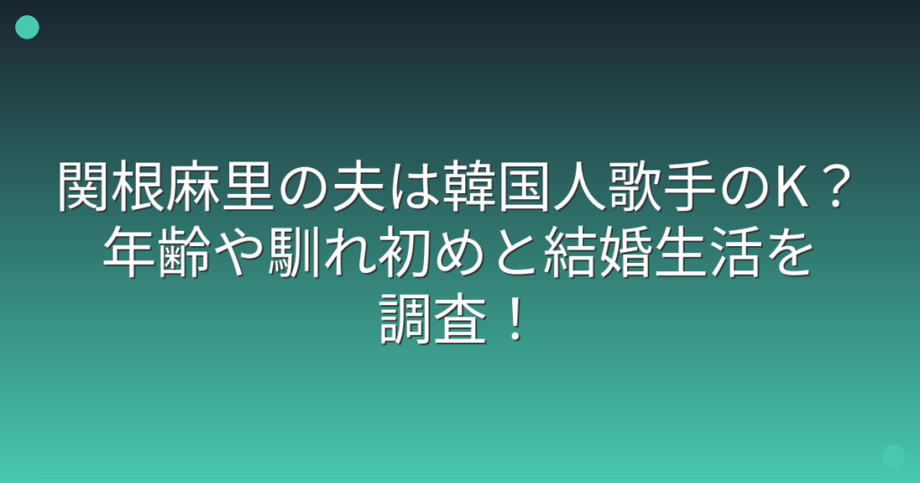 タレントの関根麻里さんの夫について、ファンの間で話題になっていますね。 関根麻里さんは2014年に韓国人歌手と結婚されましたが、旦那さんがどんな方なのか気になっている方も多いのではないでしょうか。 そこで今回は、関根麻里さんの夫の詳細や馴れ初... -