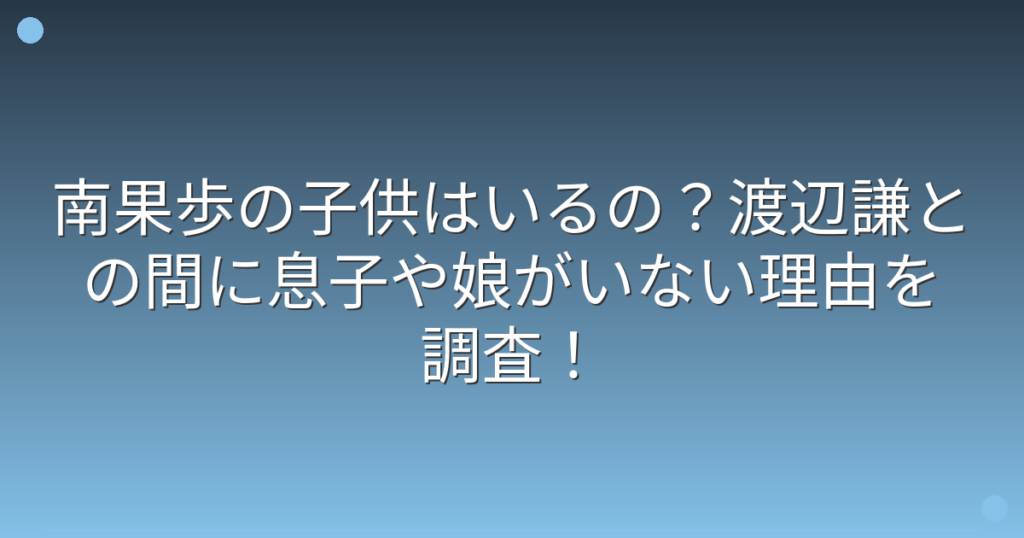 女優の南果歩さんといえば、数々のドラマや映画で活躍されている実力派女優として知られていますね。 俳優の渡辺謙さんとの結婚でも話題になった南果歩さんですが、子供はいるのでしょうか? そこで今回は、南果歩さんの子供の有無や、息子や娘がいない理... -