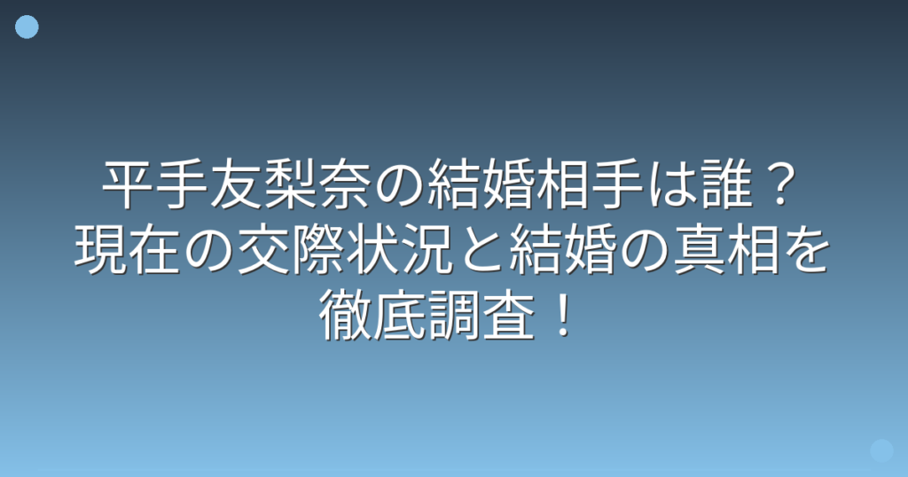 元欅坂46のセンターとして活躍し、現在は女優として注目を集めている平手友梨奈さんの結婚相手について、ファンの間で話題になっていますね。 平手友梨奈さんといえば、独特のパフォーマンスと圧倒的な存在感で多くのファンを魅了してきましたが、プライベ... -