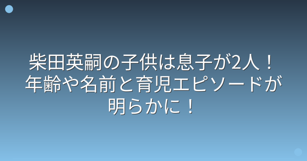 お笑いコンビ・アンタッチャブルの柴田英嗣さんの子供について、ファンの間で話題になっていますね。 テレビでの活躍が印象的な柴田英嗣さんですが、プライベートではどのような家族構成なのか気になる方も多いのではないでしょうか。 そこで今回は、柴田... -