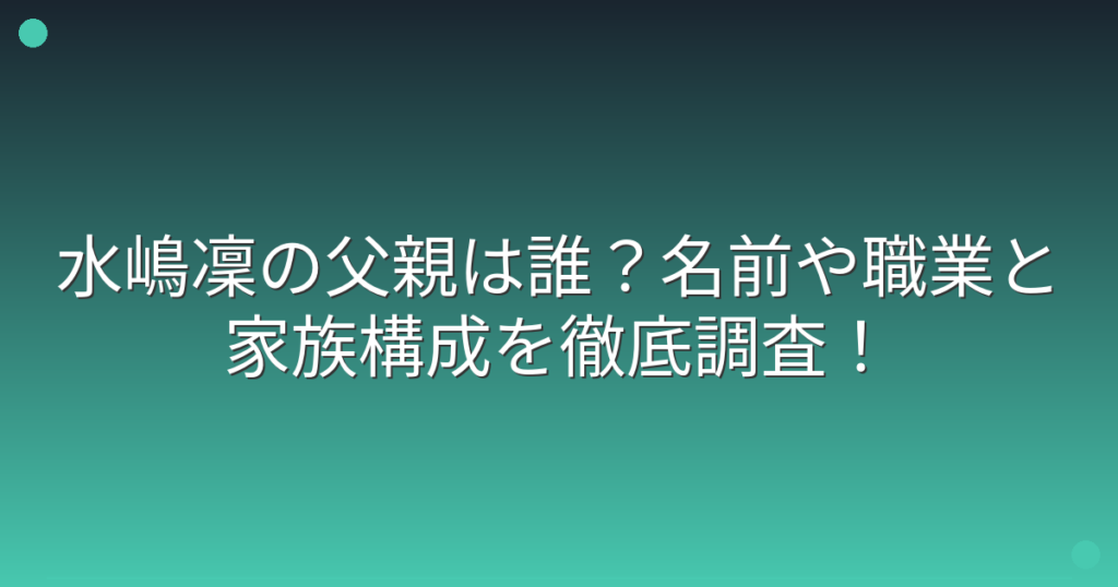 水嶋凜の父親は誰?名前や職業と家族構成を徹底調査!