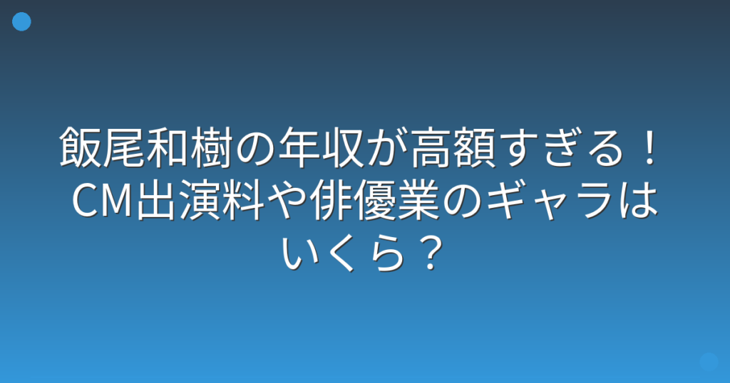 お笑いコンビ「ずん」の飯尾和樹さんが、近年俳優としても大活躍されていることが話題になっていますね。 バラエティ番組だけでなく、ドラマやCMにも多数出演されている飯尾和樹さんですが、その年収がどれくらいなのか気になる方も多いのではないでしょう... -