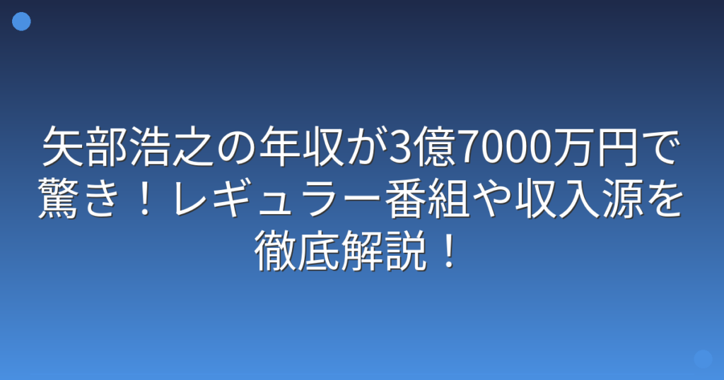 矢部浩之の年収が3億7000万円で驚き!レギュラー番組や収入源を徹底解説!