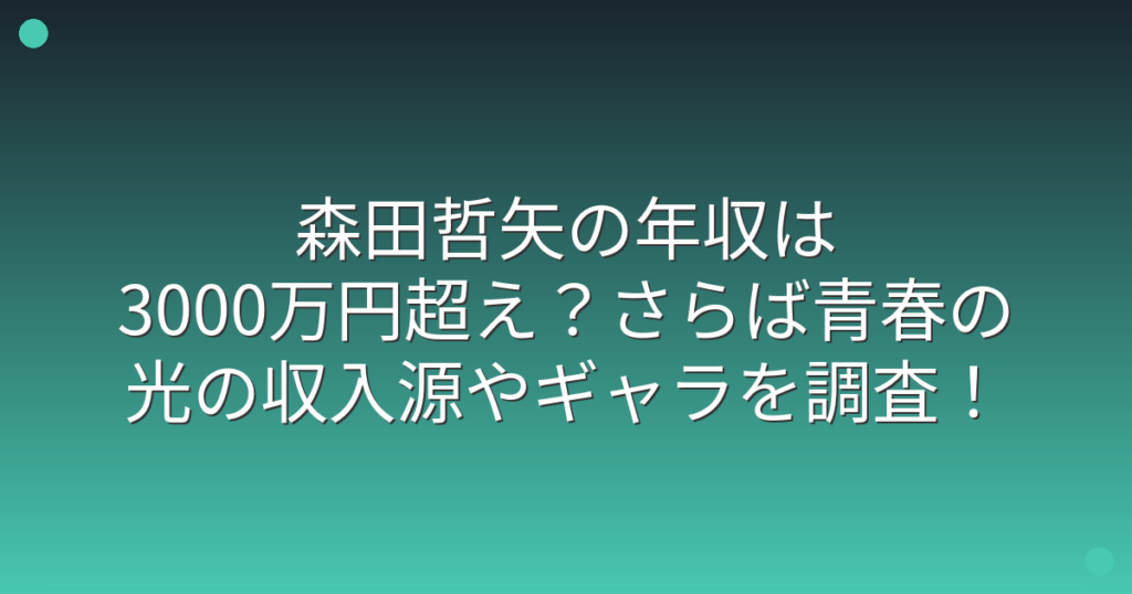 お笑いコンビ「さらば青春の光」の森田哲矢さんの年収が注目を集めていますね。 テレビ番組やYouTubeなど幅広く活躍する森田哲矢さんですが、一体どれくらいの収入があるのでしょうか。 そこで今回は、森田哲矢さんの年収や収入源、ギャラについて詳しく見... -