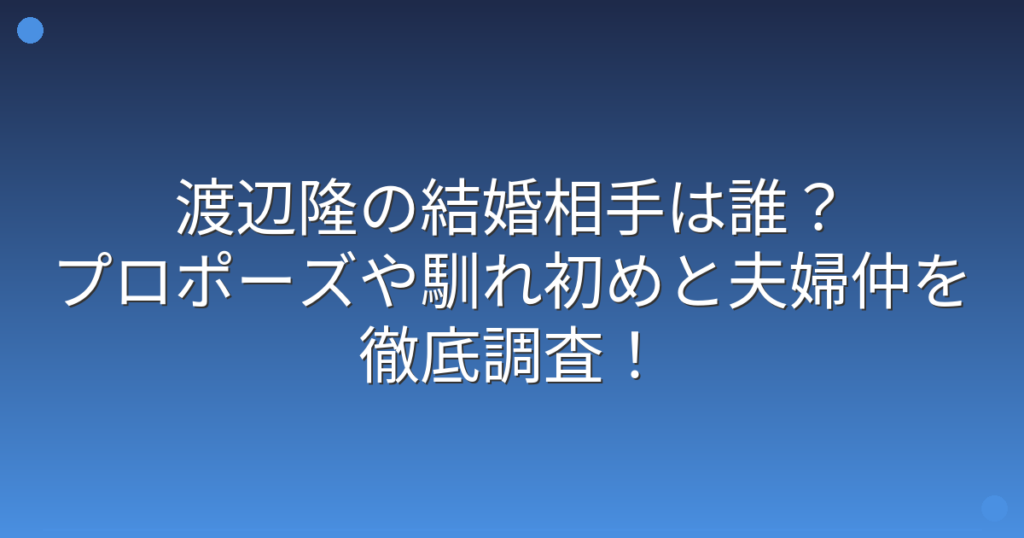 渡辺隆の結婚相手は誰?プロポーズや馴れ初めと夫婦仲を徹底調査!