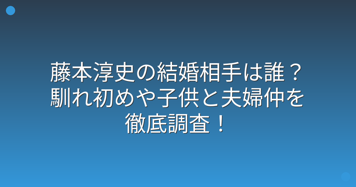 藤本淳史さんは2006年に一般女性と結婚されており、お相手のプライバシーを守りながら円満な家庭を築いていることが分かりました。