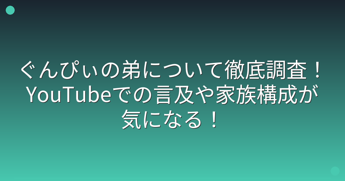 YouTubeでの活動が注目を集めるぐんぴぃさんですが、家族構成や弟についての情報を知りたがるファンが増えているようです。