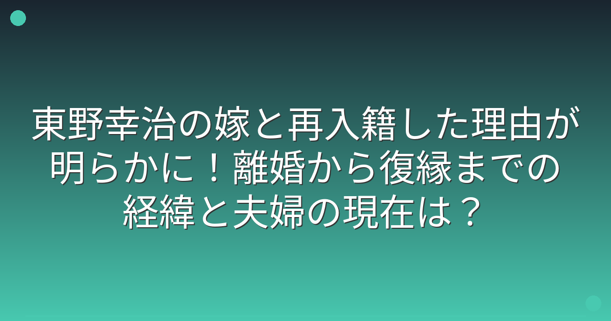2025年に入り、東野幸治さんが一度離婚した元妻と再入籍したことが明らかになりました。