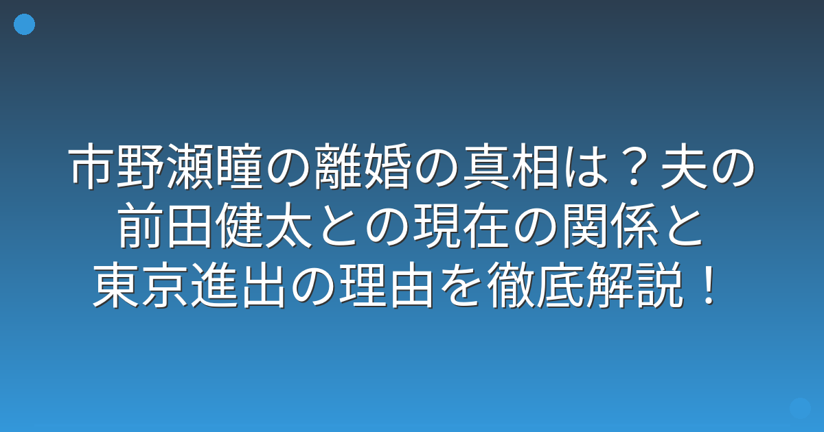 そこで今回は、市野瀬瞳さんの離婚説や現在の活動状況について、詳しく見ていきましょう!