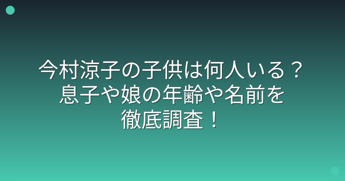 今村涼子の子供は何人?息子と娘がいるの?