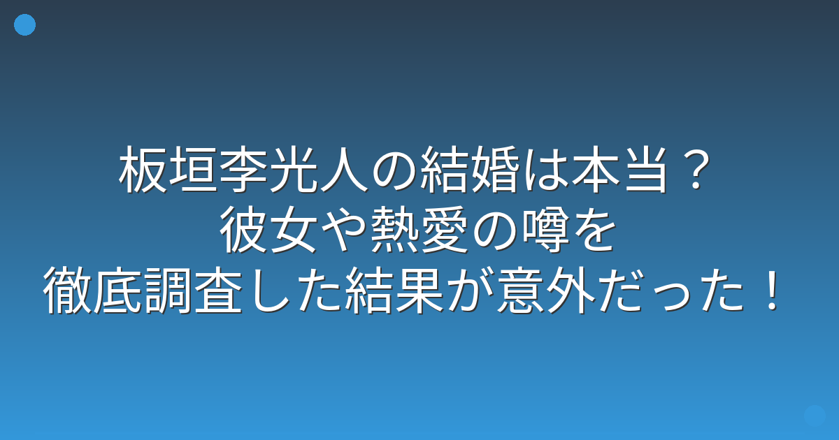 複数の情報源を調査した結果、板垣李光人さんが結婚しているという公式な発表や信頼できる報道は確認されていないことが明らかになりました。