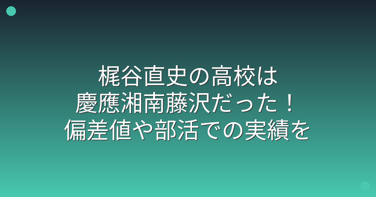 梶谷直史さんは慶應湘南藤沢高校出身で、偏差値75前後という非常に高い学力水準の学校で学びながら野球部で活動していました。