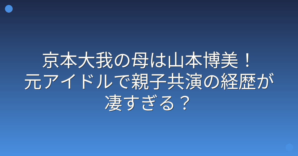 今回は、京本大我さんの母親が山本博美さんであることや、その経歴と親子関係についてお伝えしてきました。