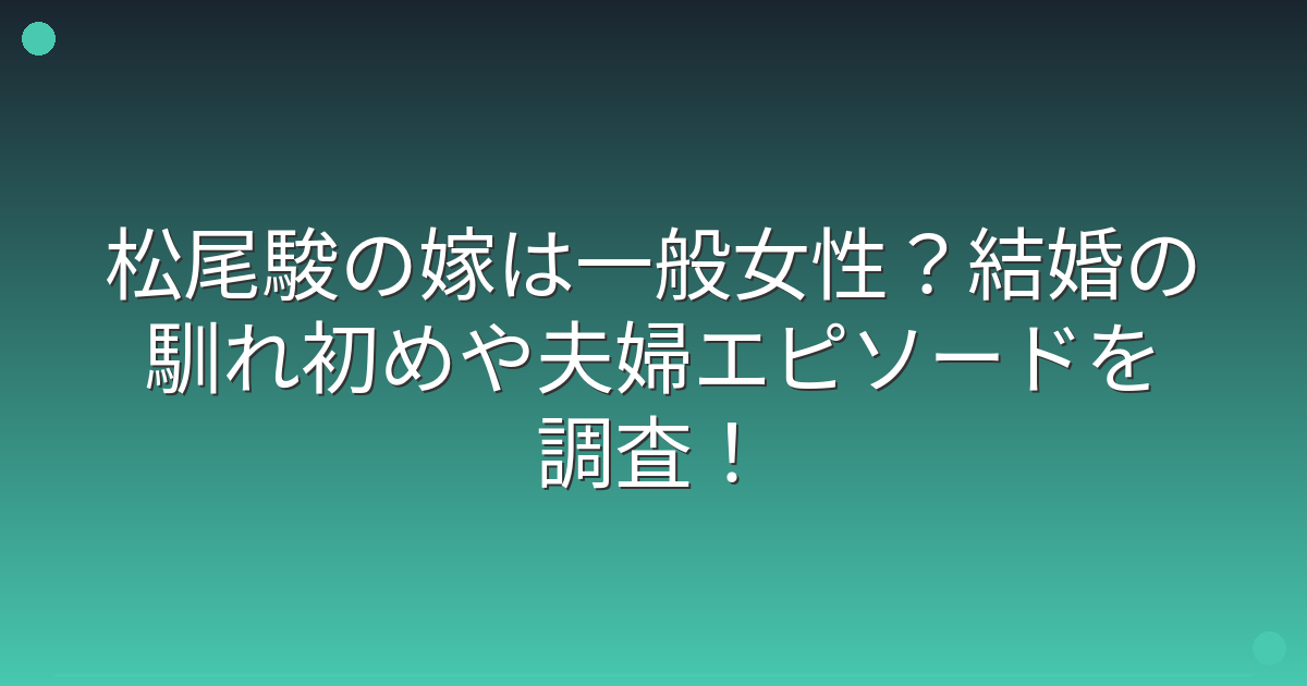 松尾駿さんは既婚者であることが知られていますが、嫁に関する具体的な情報はほとんど公開されていません。