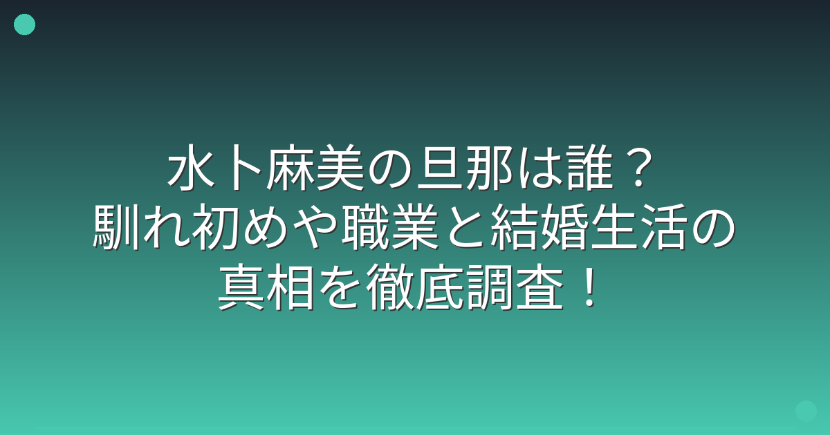 水卜麻美の旦那は誰?馴れ初めや職業と結婚生活の真相を徹底調査!