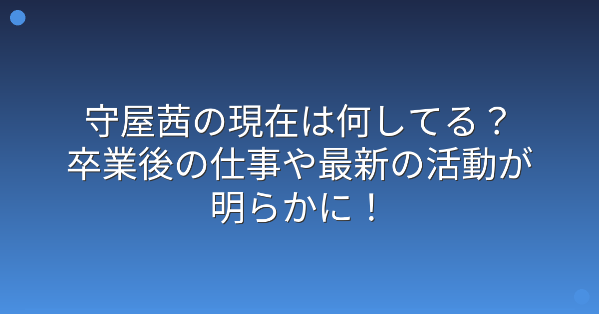グループ卒業後、守屋茜さんがどのような活動をしているのか気になっている方も多いのではないでしょうか。