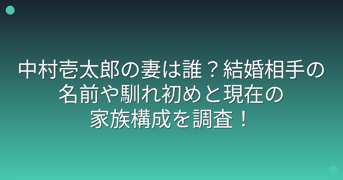 結論から申し上げますと、中村壱太郎さんは現在独身で、妻はいらっしゃいません。