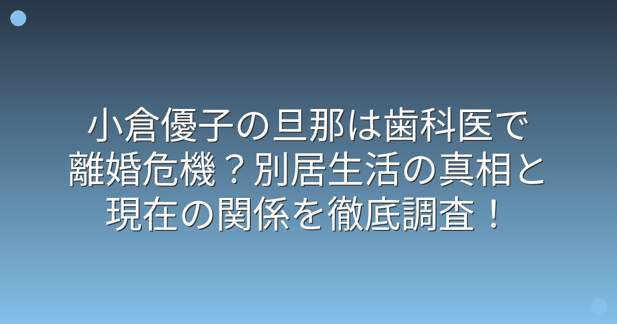 今回は、小倉優子さんの旦那さんが歯科医であることや、離婚危機・別居生活の真相についてお伝えしてきました。
