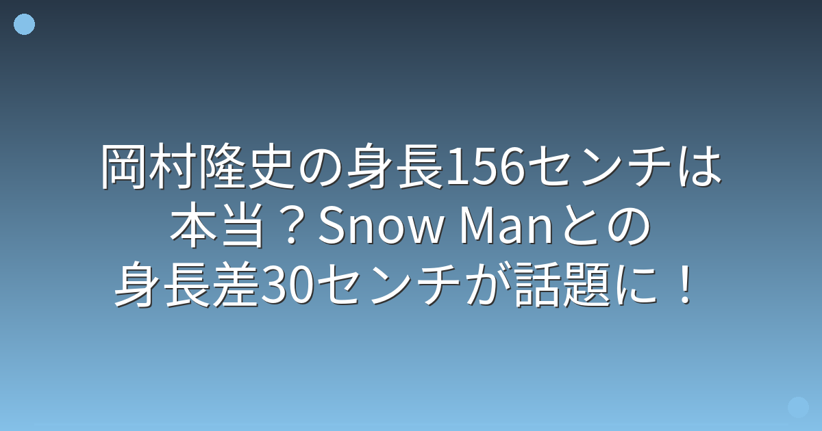 今回は、岡村隆史さんの身長156センチという事実や、Snow Manとの身長差30センチが話題になった経緯についてお伝えしてきました。