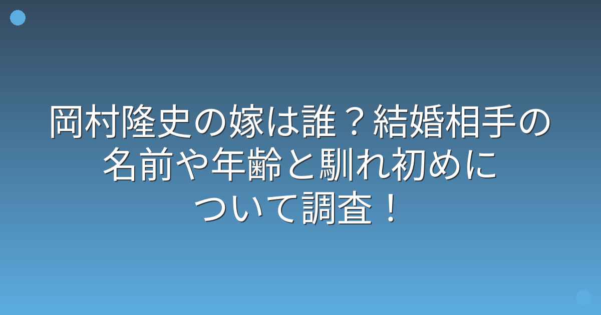 そこで今回は、岡村隆史さんの嫁は誰なのか、結婚相手の名前や年齢、そして馴れ初めについて詳しく見ていきましょう!