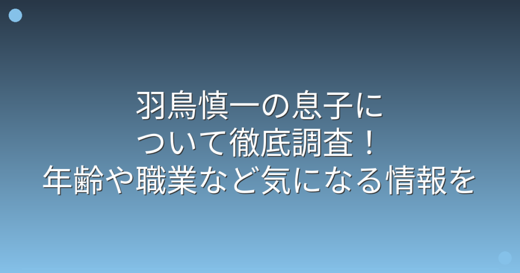 羽鳥慎一の息子について徹底調査!年齢や職業など気になる情報を詳しく解説!
