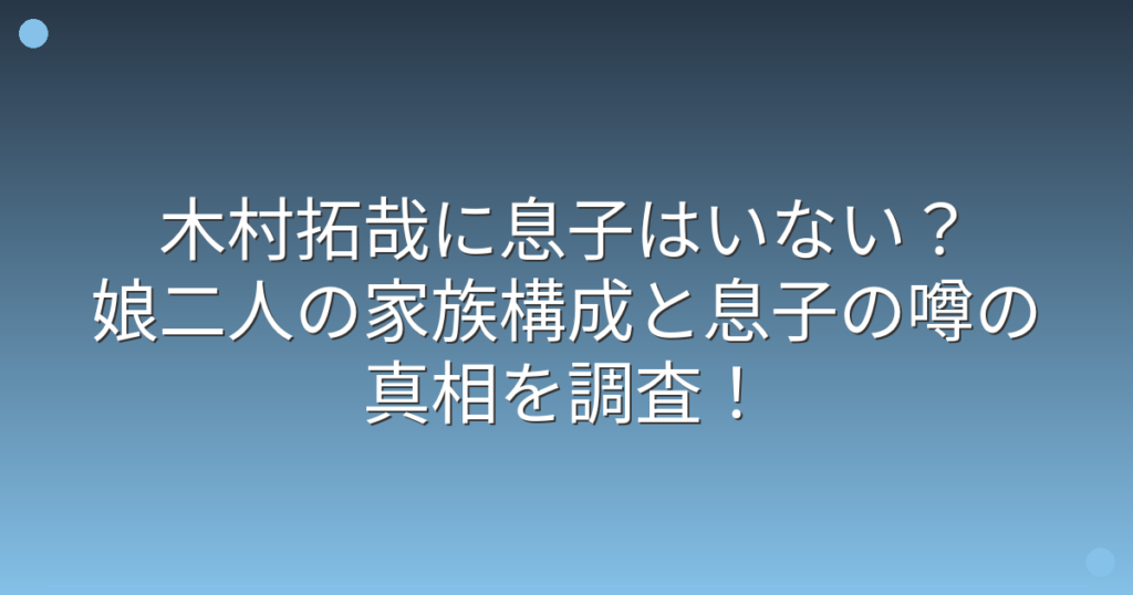 木村拓哉に息子はいない?娘二人の家族構成と息子の噂の真相を調査!