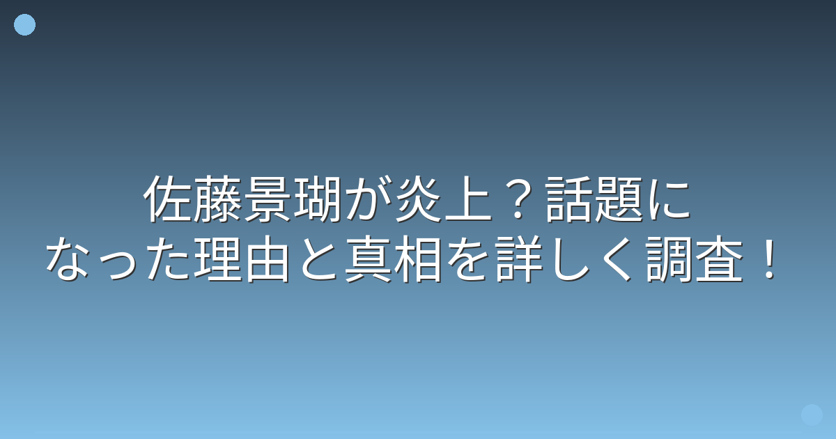 そこで今回は、佐藤景瑚さんの炎上に関する真相や話題になった理由、そして現在の状況について詳しく見ていきましょう!