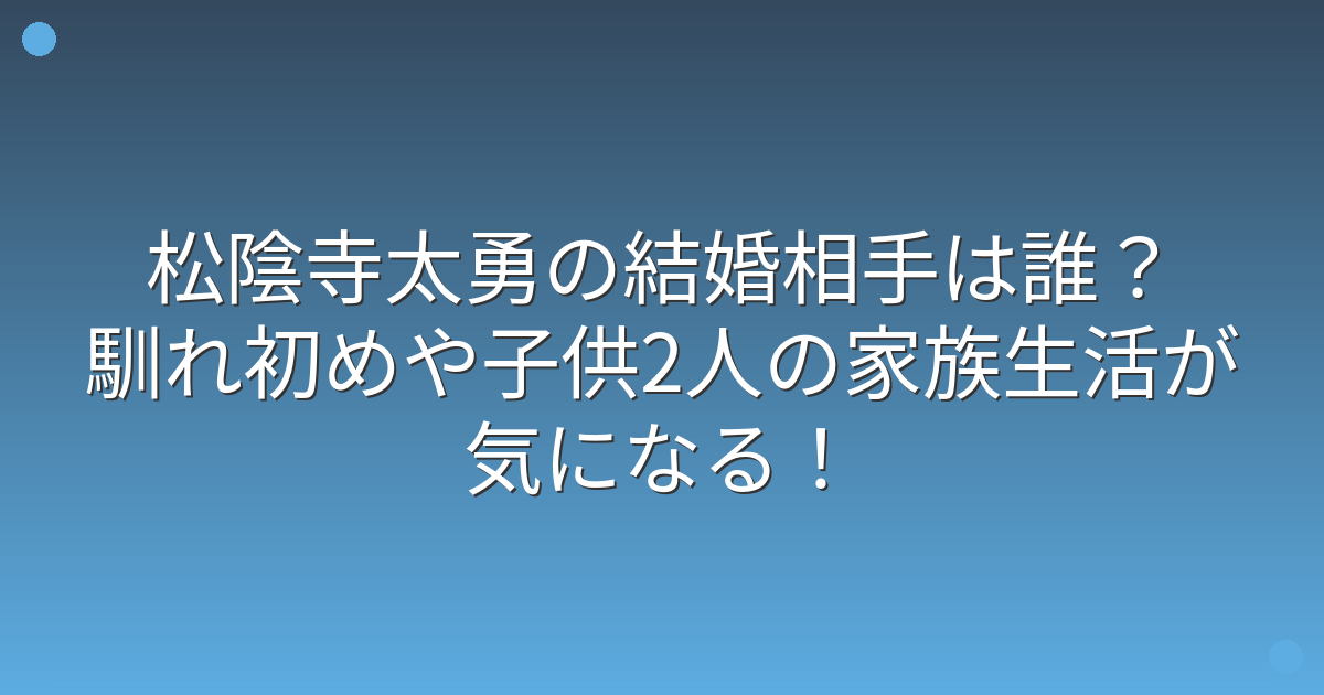 そこで今回は、松陰寺太勇さんの結婚相手や馴れ初め、子供との家族生活について詳しく見ていきましょう!