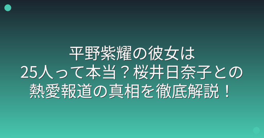 平野紫耀の彼女は25人って本当?桜井日奈子との熱愛報道の真相を徹底解説!