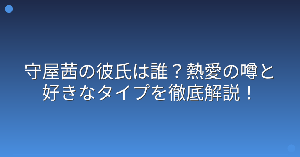 守屋茜の彼氏は誰?熱愛の噂と好きなタイプを徹底解説!