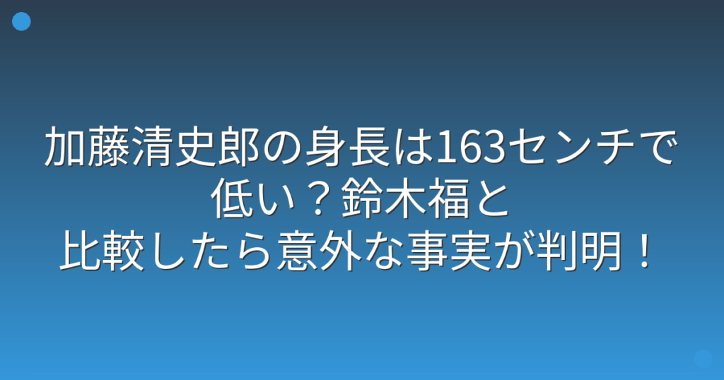 元子役として活躍し、現在も俳優として存在感を放つ加藤清史郎さんの身長が話題になっていますね。 「こども店長」として一世を風靡した加藤清史郎さんですが、成人した現在の身長はどのくらいなのでしょうか? SNSでは「身長が低い」「サバ読み疑惑がある...