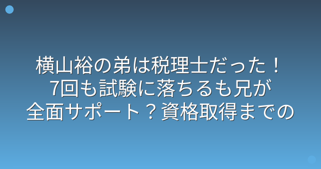 横山裕の弟は税理士だった!7回も試験に落ちるも兄が全面サポート?資格取得までの感動秘話を徹底解説!