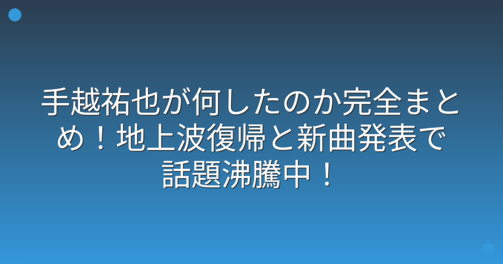芸能界で大きな話題を呼んでいる手越祐也さんについて、様々な憶測が飛び交っていますね。 特に最近では地上波テレビへの復帰や新曲発表など、精力的な活動が注目を集めています。 そこで今回は、手越祐也さんが何をしたのか、最新の活動内容から過去の経...