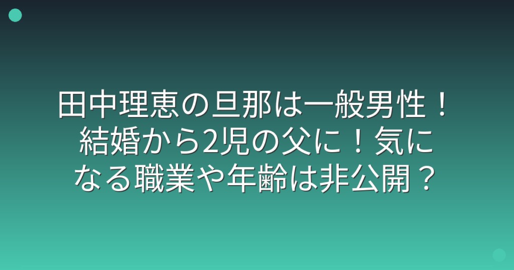 田中理恵の旦那は一般男性!結婚から2児の父に!気になる職業や年齢は非公開?