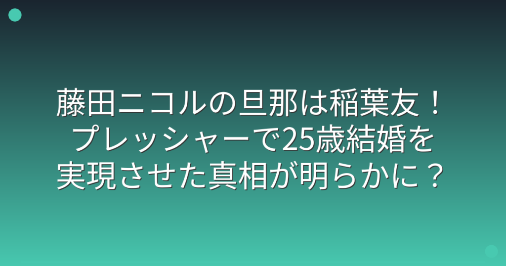 藤田ニコルの旦那は稲葉友!プレッシャーで25歳結婚を実現させた真相が明らかに?