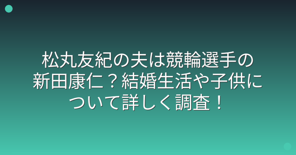 松丸友紀の夫は競輪選手の新田康仁?結婚生活や子供について詳しく調査!