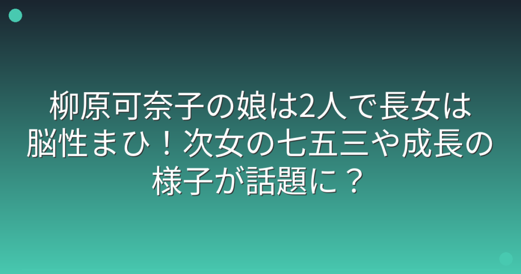 お笑いタレントの柳原可奈子さんの娘たちの成長が、SNSを中心に大きな注目を集めていますね。 特に長女さんの脳性まひについての公表や、次女さんの七五三の様子など、家族の日常がインスタグラムで発信され話題となっています。 そこで今回は、柳原可奈子...