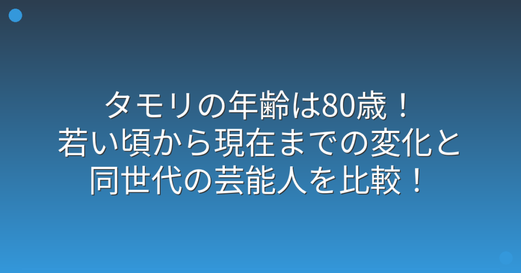 日本のテレビ界を代表する司会者であるタモリさんの年齢が話題になっていますね。 2025年現在も現役で活躍し続けるタモリさんですが、実際の年齢や生年月日について気になる方も多いのではないでしょうか。 そこで今回は、タモリさんの年齢や生年月日、同... -