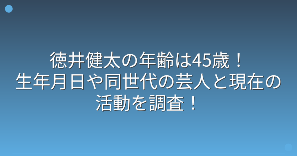 徳井健太の年齢は45歳!生年月日や同世代の芸人と現在の活動を調査!