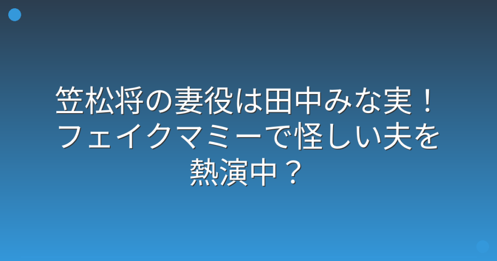 笠松将の妻役は田中みな実!フェイクマミーで怪しい夫を熱演中?