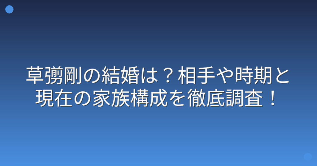 元SMAPのメンバーで俳優として活躍する草彅剛さんの結婚について、ファンの間で大きな関心が集まっていますね。 最近では主演ドラマでシングルファーザー役を演じていることもあり、草彅剛さんの結婚や家族構成について気になっている方も多いのではないで...