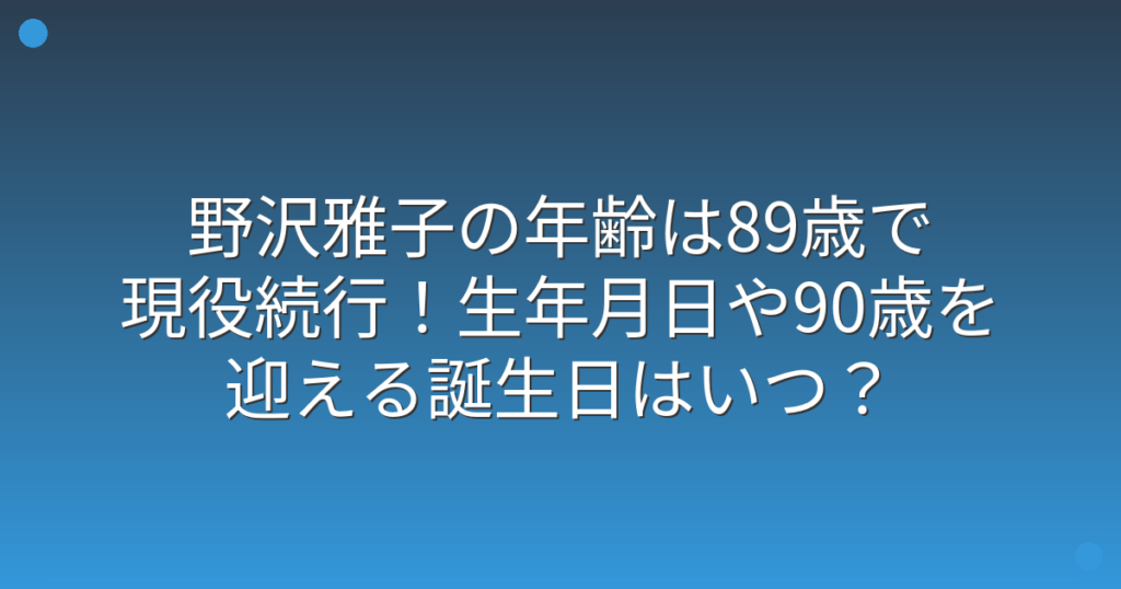 野沢雅子の年齢は89歳で現役続行!生年月日や90歳を迎える誕生日はいつ?